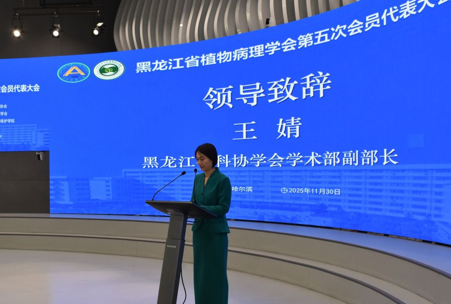 王婧代表学会业务主管部门致辞。她指出,深入研究和大力推动绿色植保新技术,对我省绿色农业高质量发展具有重要的战略意义。她希望,学会坚持正确方向,不断加强自身建设,带领广大会员代表开拓创新,为龙江全面振兴、全方位振兴作出新的更大贡献。