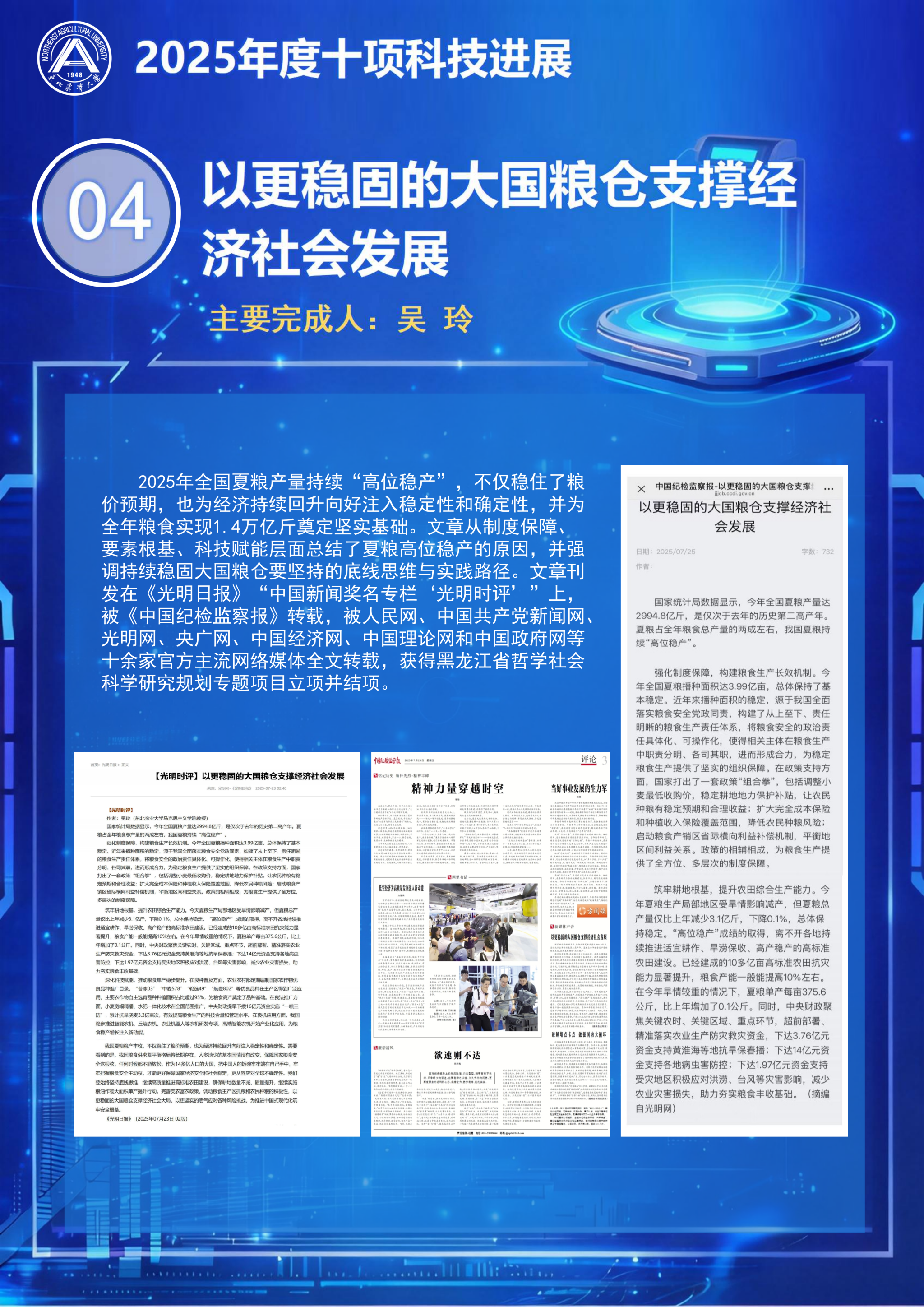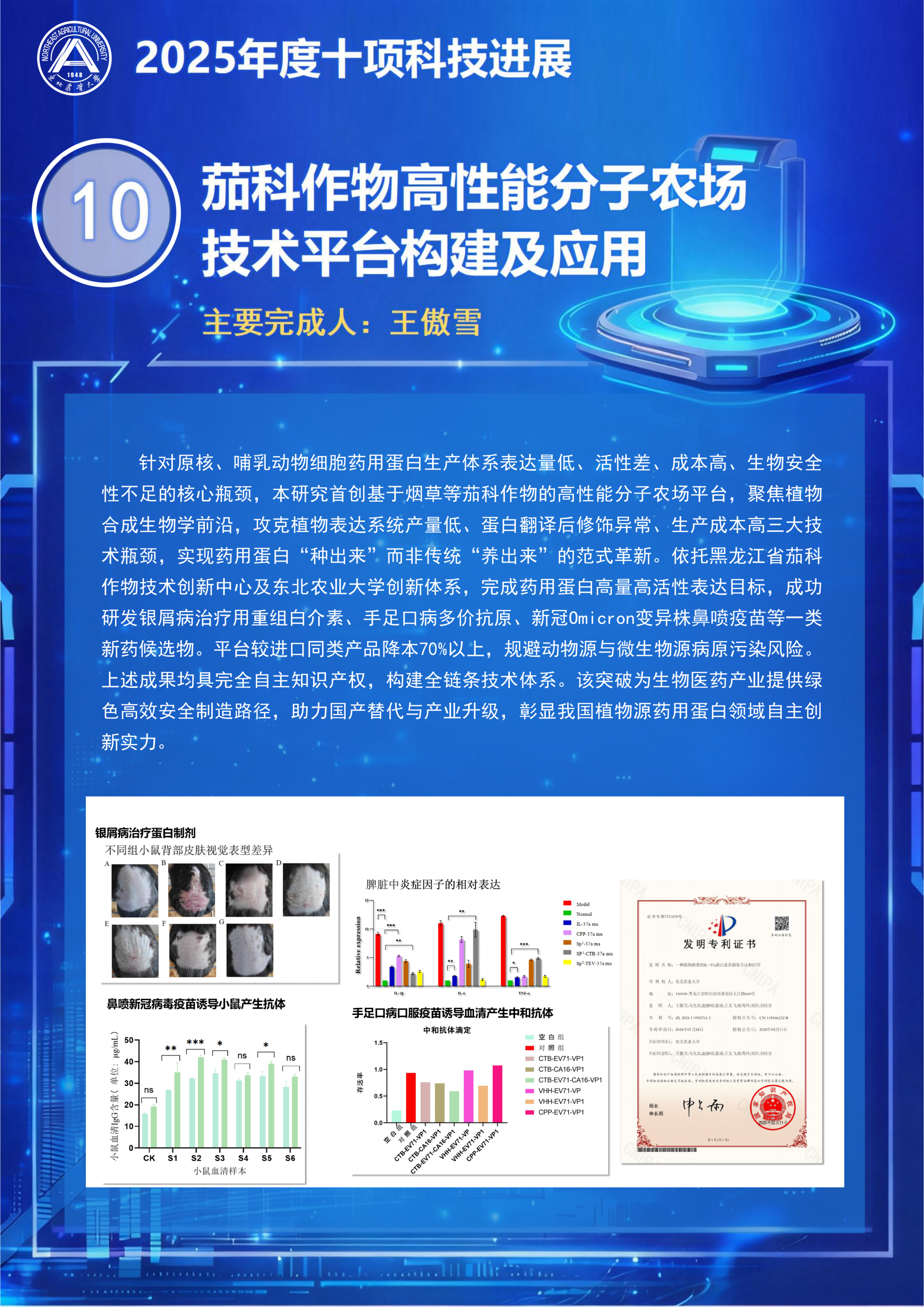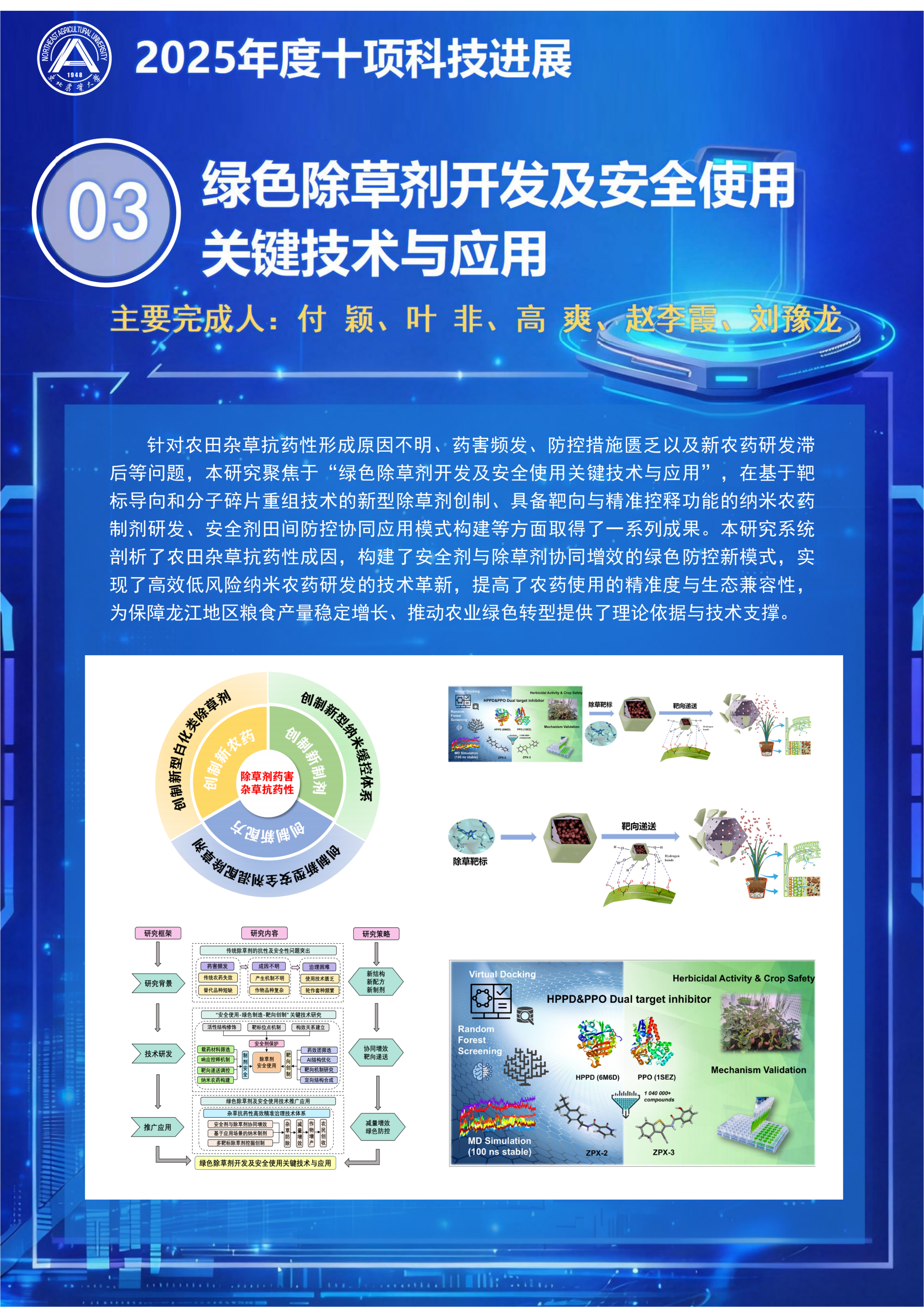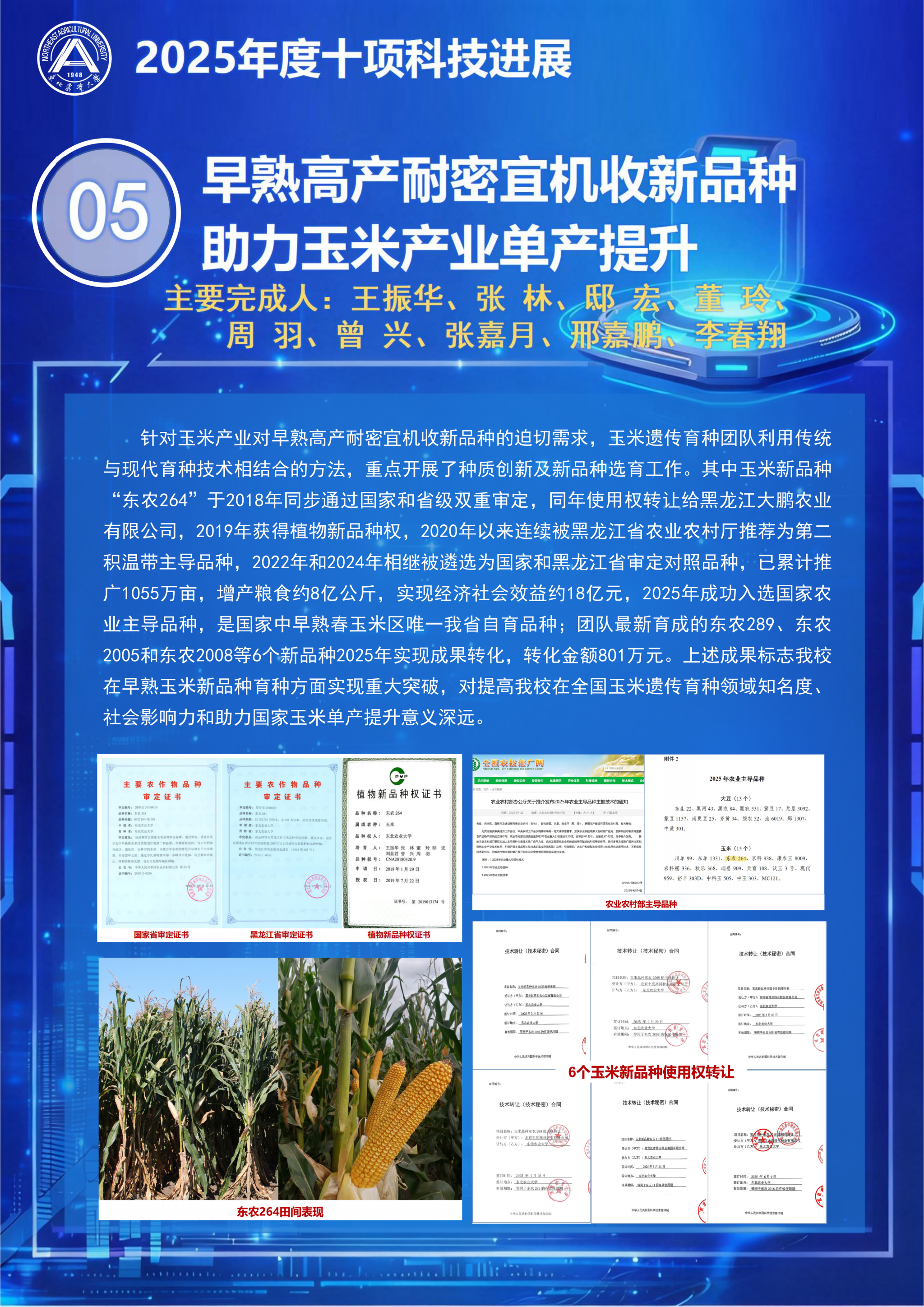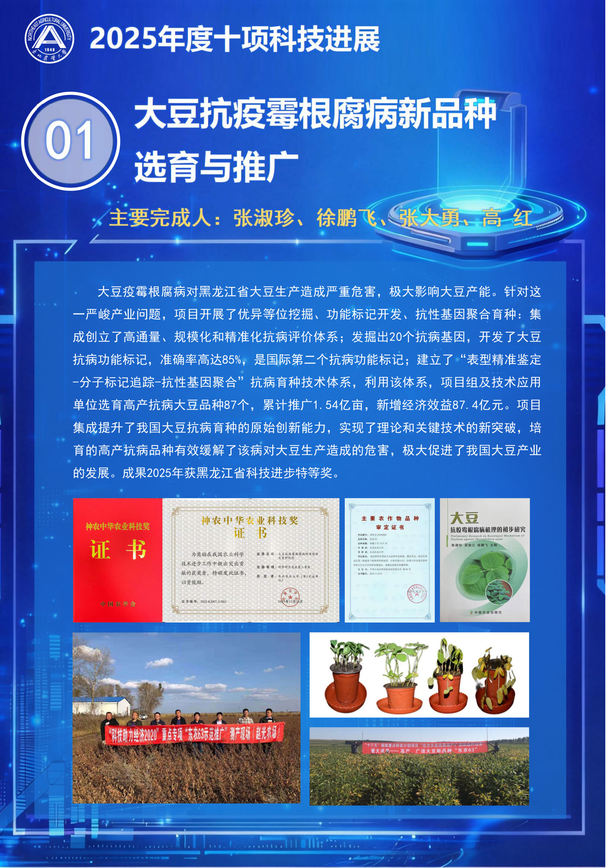 我校2025年度十项科技进展揭晓 管理员 2026年03月31日 14:42 浏览次数:次 2025年,学校科技工作紧紧围绕服务国家战略需求和区域现代农业发展,聚焦有组织科研、聚力科研平台建设、聚智重大成果产出、聚效新文科建设、聚势管理机制改革,稳步推进科研自主创新能力提升、重大科研任务承担能力提升、高水平科研平台支撑能力提升、科研管理改革创新,各项工作取得了丰硕成果。经学院推荐、形式审查和专家评审等环节,遴选了2025年度学校十项科技进展,现予以发布。 供稿/科学技术处(社会科学处) 上一条:我校参加2026种子大会暨南繁硅谷论坛 下一条:哈尔滨理工大学来校开展科技工作调研 返回