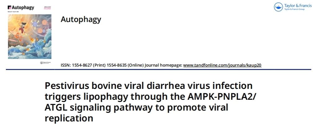 近日,我校乔薪瑗教授团队在国际权威期刊Autophagy(影响因子14.3,中科院1区TOP期刊)发表了题为“Pestivirus bovine viral diarrhea virus infection triggers lipophagy through the AMPK-PNPLA2/ATGL signaling pathway to promote viral replication”的研究论文。该研究发现,BVDV感染可导致ATP耗竭并同时诱导细胞内脂质代谢重编程。