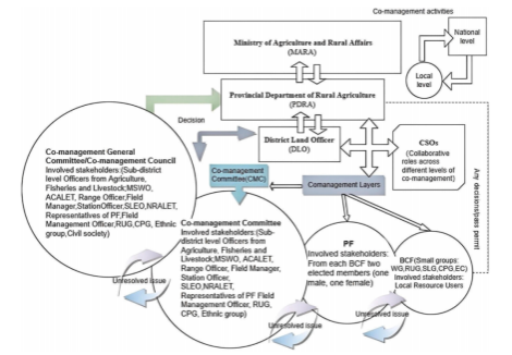聚焦上述纵向治理难题,团队以黑龙江省拜泉县为案例,构建“国家-省-县-村”纵向治理框架,对应“政策网-统筹区-协调场-发展极”逻辑展开研究:研究通过访谈国家至农户层级的24位关键对象、组织覆盖4个村庄的16组焦点小组讨论,结合系统化编码、矩阵查询与词频分析,厘清各级治理主体的交互强度与瓶颈;继而搭建“治理工具-参与主体-层级协同”可视化评估体系,针对性制定优化路径,形成“机理揭示-路径落地”的闭环研究。同时,研究对比俄罗斯技术主导、东非捐赠者驱动、埃塞俄比亚社区主导等国际治理模式,结合国际“政策需衔接地方实际与市场激励”的研究视角,明晰中国模式的核心差异、特色与改进方向。