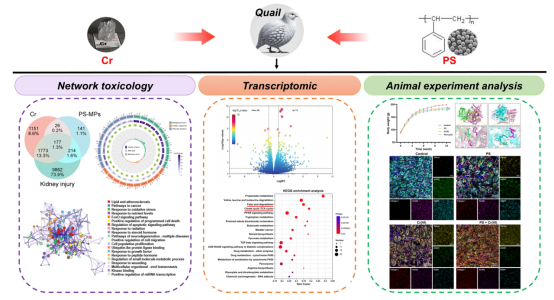 工业化进程加速所带来的重金属、微塑料等污染问题日益突出,严重威胁生态稳态与畜禽健康。其中,国际公认致癌物六价铬具有强肾脏毒性,可诱发多器官纤维化;微塑料则因难降解、稳定性强长期在环境中富集。值得注意的是,污染物常以复合形式存在并通过食物链影响人类健康,但聚苯乙烯微塑料与六价铬联合暴露对禽类的毒性及协同作用尚缺乏系统研究。
